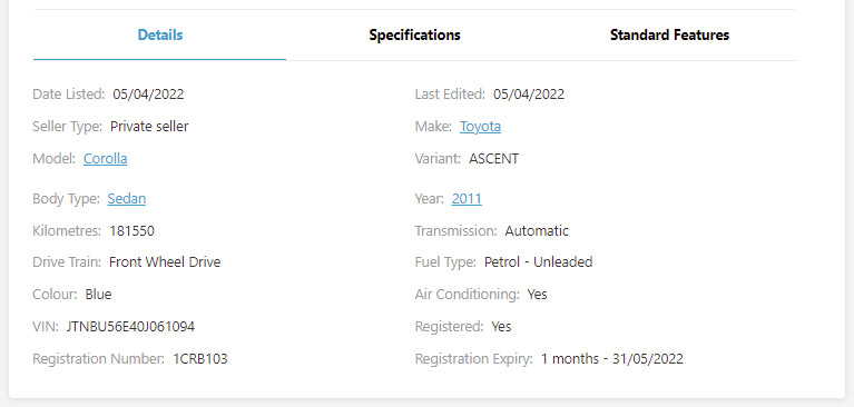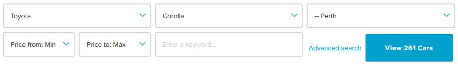 Heading on over to the Gumtree Cars, we can input the initial search for a Toyota Corolla.